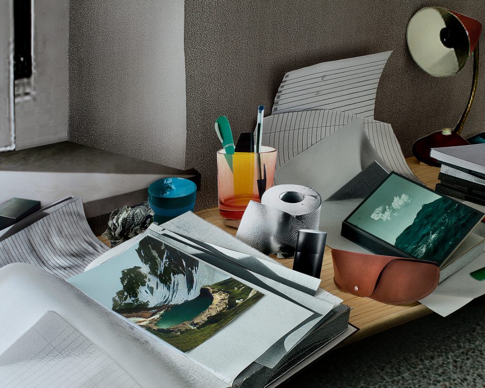 Una volta salvate, infatti, ne ho ripreso le texture, gli oggetti, e ricreato gli spazi attraverso plastici di carta di diversa scala, per poi rifotografarli al termine.