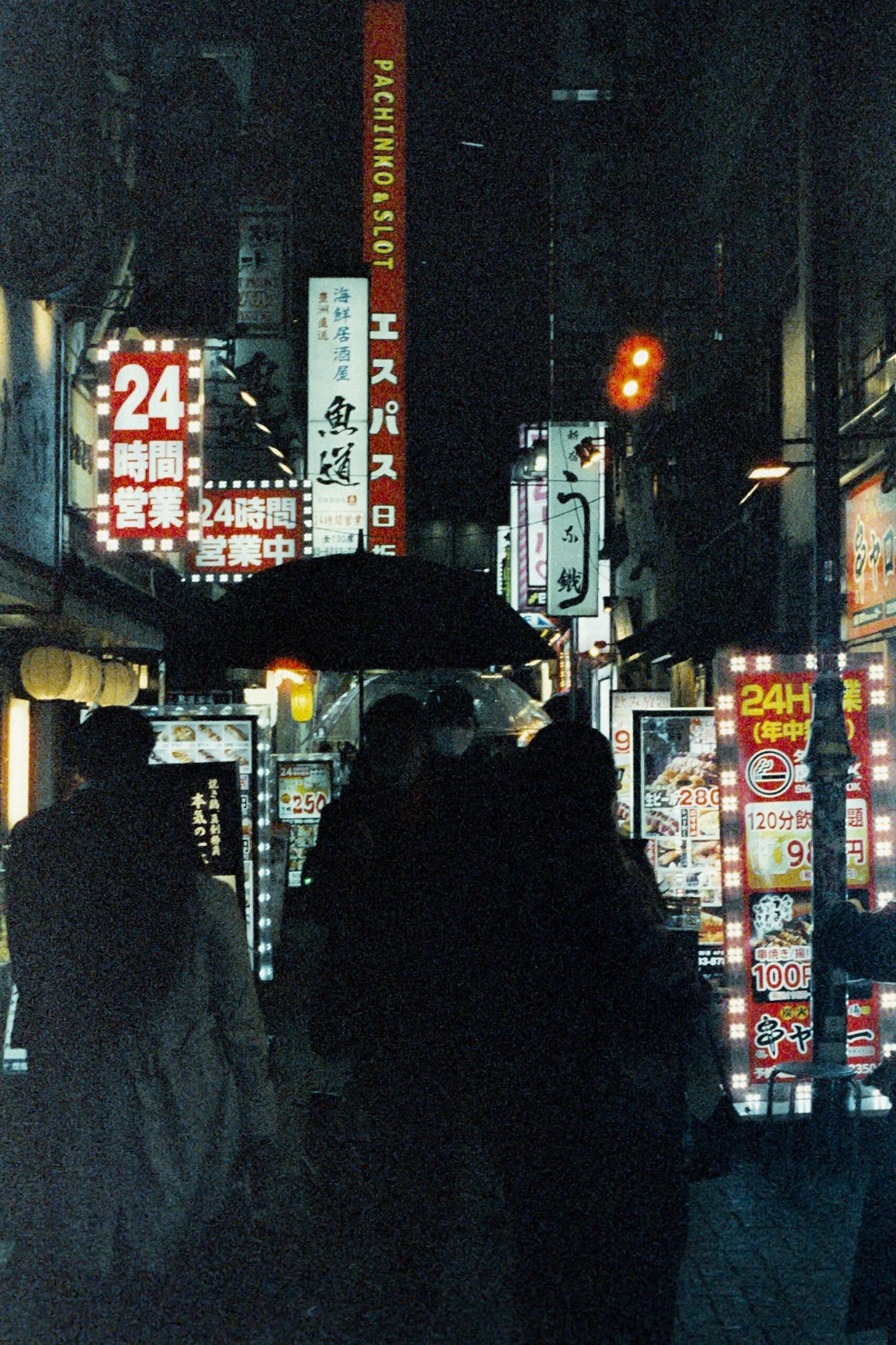 Questo progetto nasce dall’osservazione della città di notte, quando la quotidianità continua a scorrere ma cambia consistenza. Stazioni, piccoli ristoranti, negozi aperti 24 ore e corridoi di passaggio diventano spazi ordinari attraversati da presenze sospese. La luce artificiale isola e frammenta, filtra i corpi attraverso vetri e riflessi, trasformando gesti comuni in apparizioni instabili. Ho scelto di lavorare in analogico, accettando grana, imperfezioni e dominanti cromatiche come parte del linguaggio. L’immagine non è nitida né definitiva: la perdita di definizione e il movimento rendono le figure meno identificabili, più fragili, come tracce che attraversano lo spazio senza fissarsi.