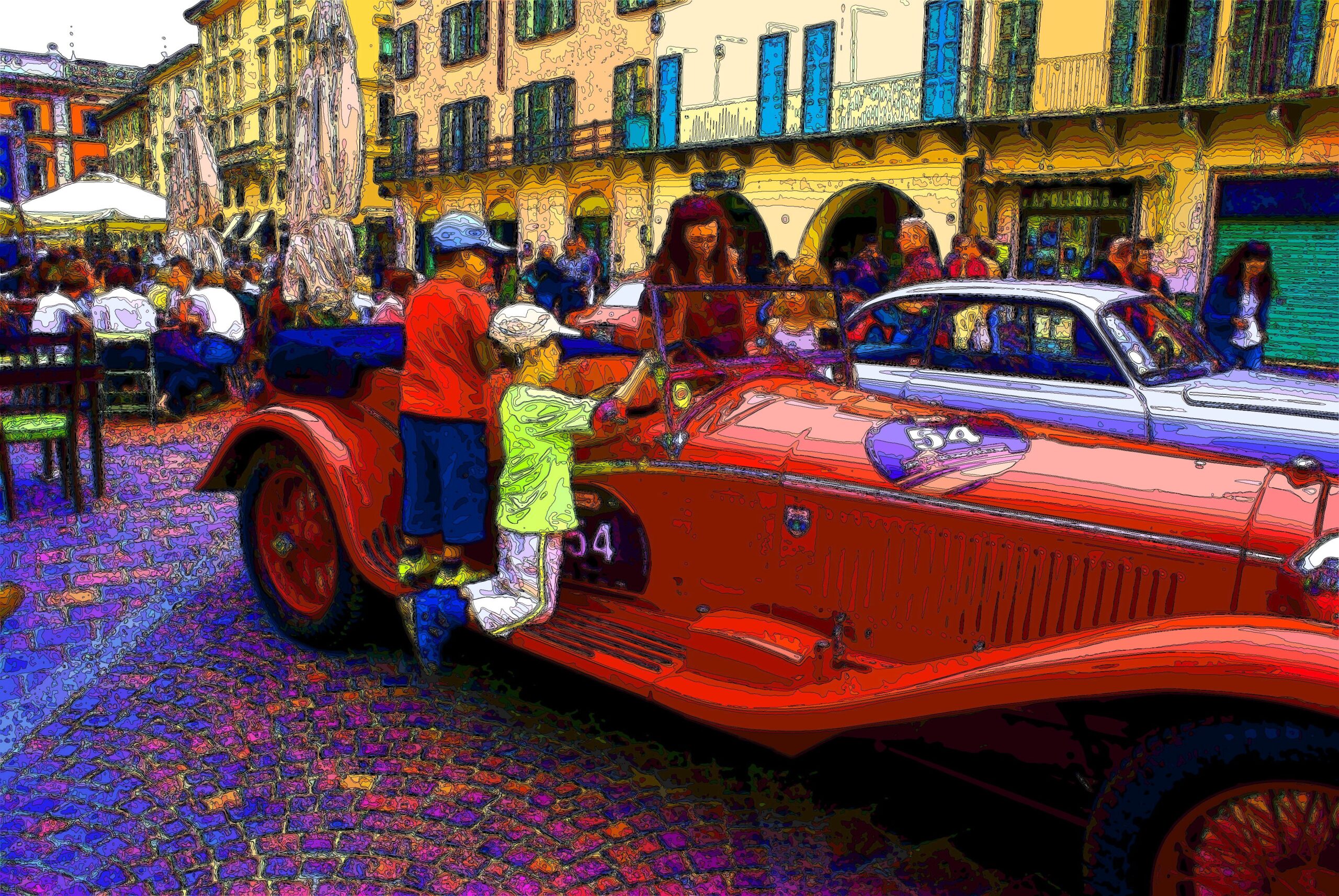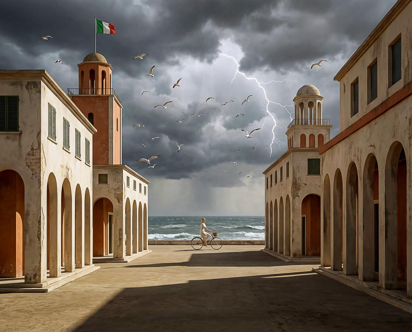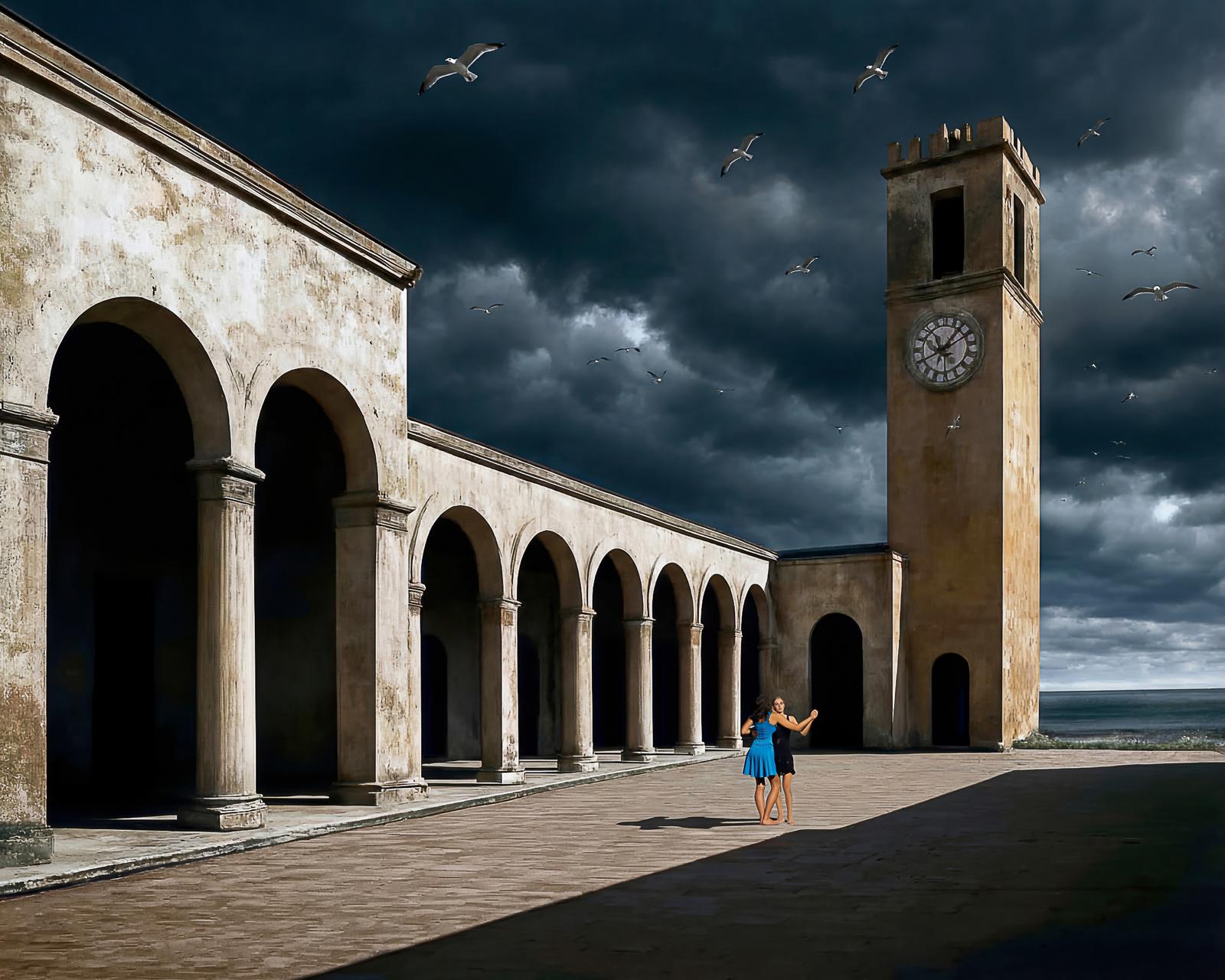 I ritratti di persone catturano identità intime e universali, restituendo volti come tracce di un presente che si rinnova. Le immagini della Mille Miglia evocano il movimento e il mito, trasformando la velocità in una dimensione senza tempo. Le architetture metafisiche, abitate da figure umane solitarie ed evanescenti, aprono spazi silenziosi in cui realtà e immaginazione si fondono.